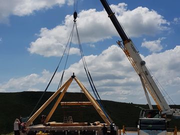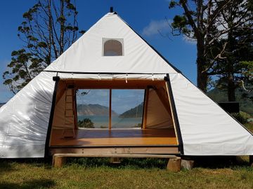 A log frame accommodation pyramid designed and built by Tehuia Log Homes www.tehuia.co.nz